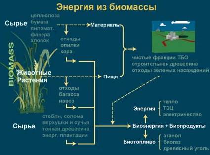 Существует несколько основных технологий производства энергии из биомассы: