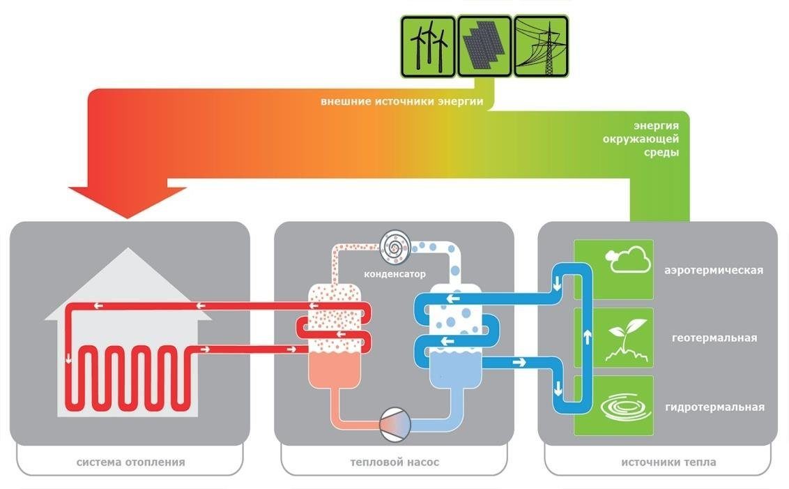 Существует несколько типов геотермальных систем отопления, включая:
